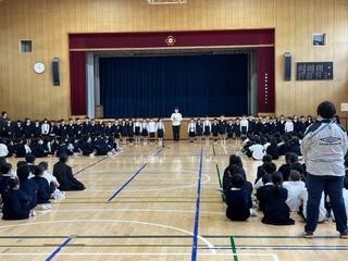 1年生は花道を通って入場し、在校生の前で元気にあいさつをしました。