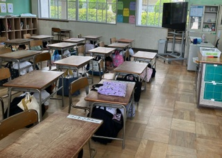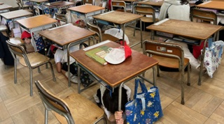 ・今回は、地震の後に津波がくるかもしれないという想定なので、高い場所(校舎の三階)へ移動します
