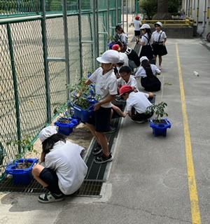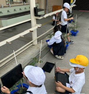 高さを比べるたまに、1番高いところに目印をつけて、せいちょうを確認しています