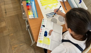 絵の具の使い方を確認して、筆使いの練習をしていました