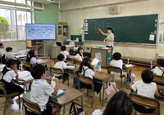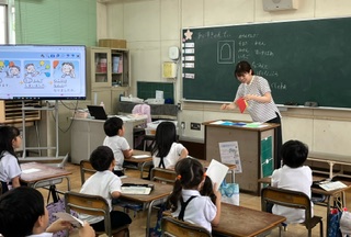 アイスキャンディーの書かれた台紙に、好きな色の布をはって、お気に入りのアイスを作ります