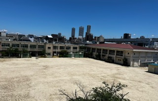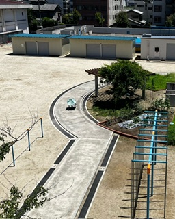 運動場では、業者の方が樹木の剪定をしてくださっていました