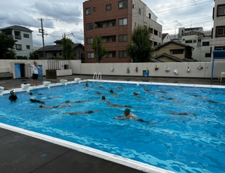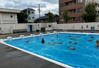 プールの中で基本の動きを丁寧に確認しながら、活動をすすめていました