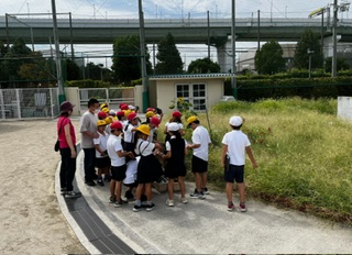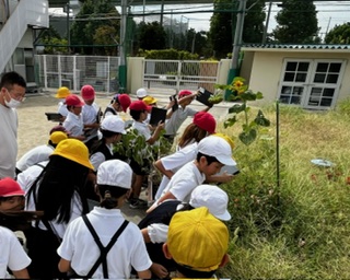 ひまわりなどの花の様子を観察し、タブレットにも記録していました