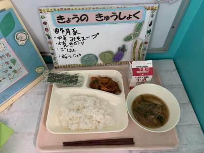 酢豚、中華みそスープ、焼きのり、ごはん、牛乳