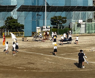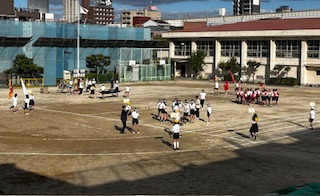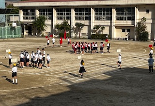 放課後、運動場では代表委員と応援団が練習を頑張っていました