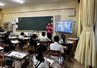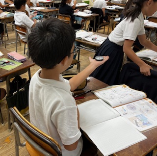 かげの向きを調べるために、方位磁針の使い方を実際に使いながら確認しました