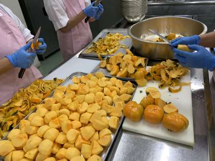 ※今日の給食には、さつまいもとかき(平種無柿)が使われています。