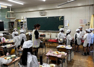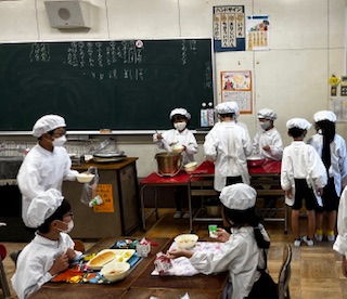 給食当番だけでなく、みんなで協力して配膳をしていました