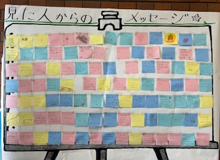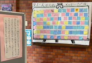 作品展に来ていただいたみなさんからのメッセージを玄関前に掲示しています