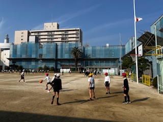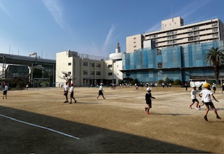 多くの児童が運動場で元気に遊んでいました