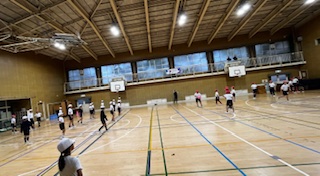 体育館では、屋内スポーツクラブと屋外スポーツクラブが一緒に活動をしました