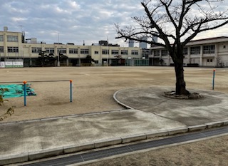 昨夜に降った雨の影響で少し運動場はぬかるんでいます
