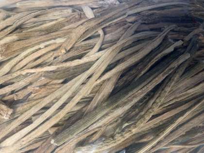 干しずいきは、ずいきの皮をむいて、水にさらした後、乾そうさせたものです。昔から煮物や汁物などによく使われています。