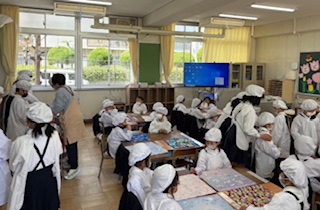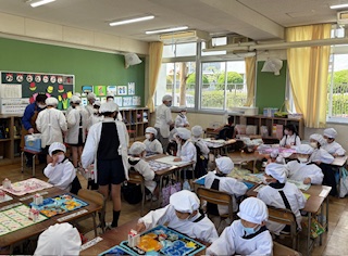 1年生の給食 配膳の様子