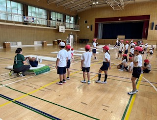 体育館でマット運動を行いました