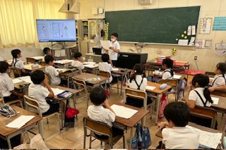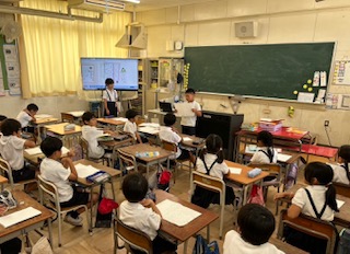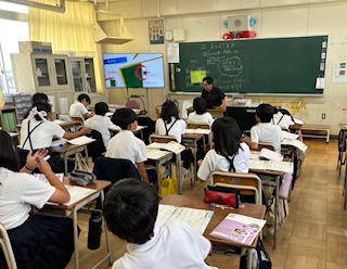 授業の最後の時間に、世界の国々を紹介しています(大阪関西万博の開催に合わせ)