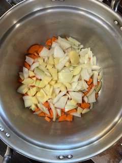 野菜のカットは、調理実習の経験を活かして進めることができています。
