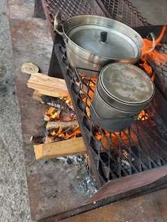 火おこしに苦労しましたが、スタッフの方の協力も得ながら、おこすことができました。