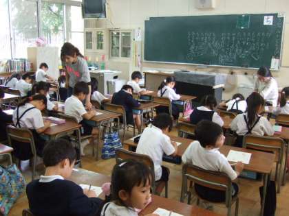 1年生は、国語のひらがなれんしゅうと教科書の音読をしました。初めての学習参観で、緊張している子どもたちが多かったですが、一生懸命先生のお話を聞いていました。