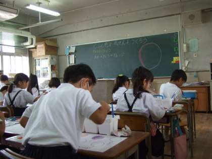 2年生は、図工の自分色の風船をつくろうの学習をしました。まだ、慣れない絵の具を一生懸命使って自分で考えた風船を描くことができました。