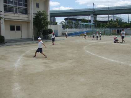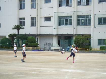 来週から始まるスポーツテストに向けて、立ち幅跳びとソフトボール投げの練習をしました。ソフトボールを遠くに投げるコツは、斜め上に角度をつけて投げるのがいいそうです!