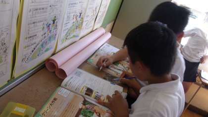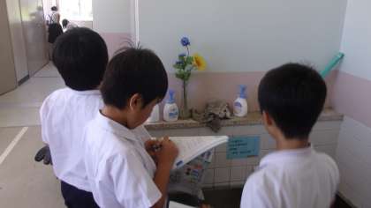 「クリーン作戦」で手洗い場や教室の汚れを自分達で見つけています。