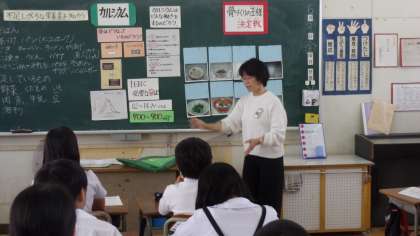 6年生に栄養教育として、三先小学校の栄養教諭の城先生が来てくださいました。