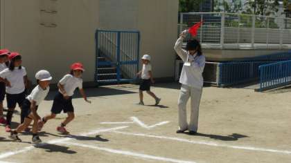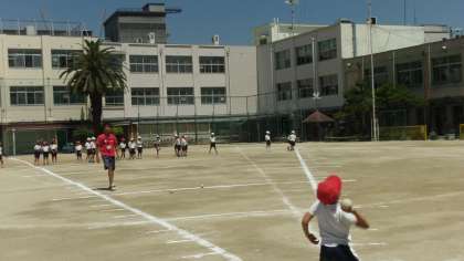 2年生が50メートル走とボール投げをしていました。