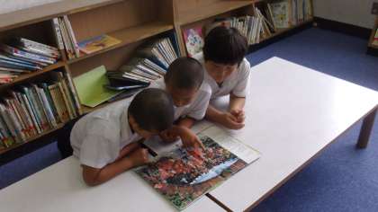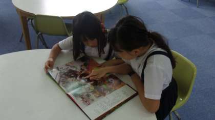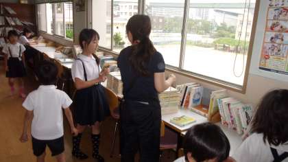 3時間目から雨が降ってきたので、昼休みに図書館開放をしました。