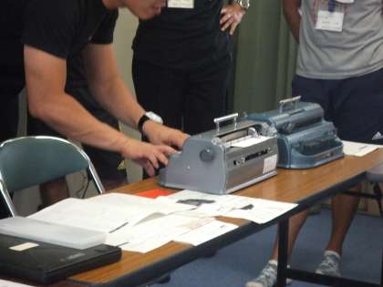 点字の読み方、打ち方の練習をした後、点字を打つ機械の体験をしました。