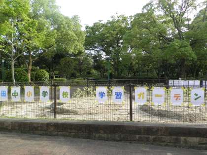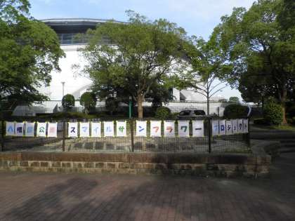 子どもたちが書いた看板も、八幡屋公園の方に設置していただきました。
