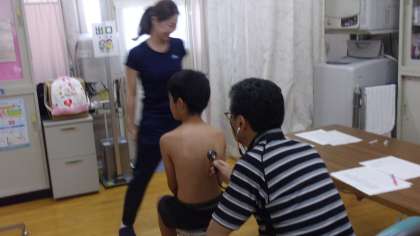 5年生が林間学習に行くので、内科の校医の先生にみていただきました。