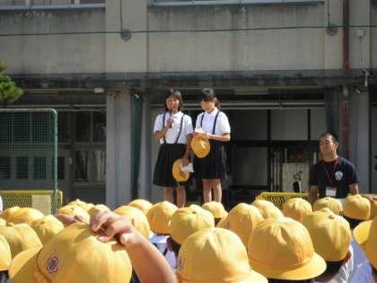 最後に、体育の担当の先生から明日の大阪プールを楽しむ会についてのお話がありました。明日の大阪プールを楽しむ会、とても楽しみですね!