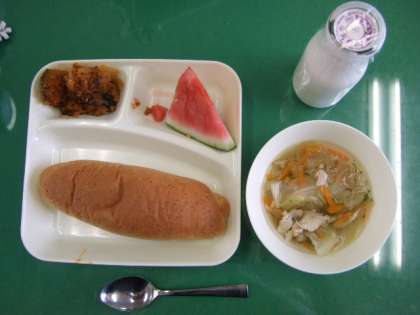 エプロン・帽子・マスクをつけ、手を丁寧に洗って
