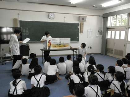 毎月第2第4月曜日の20分休憩の時間に地域の方が、子どもたちに本の読み聞かせに来ていただいています。