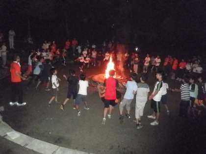 朝から大雨でしたが、「まがたま」を作り、キャンプファイアで盛り上がりました。