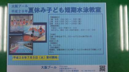 大阪プールの方が「夏休み短期水泳教室」のパンフレット