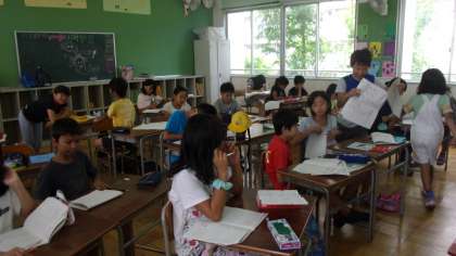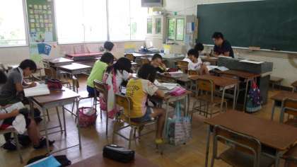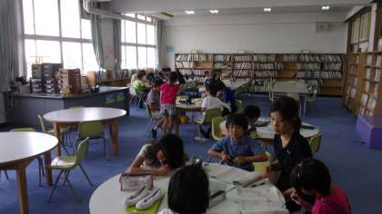 各学年で夏休み中の午前中も、少しでも学力を高めようと、教室や図書室で、宿題などを中心に自主的に学習をすすめています。