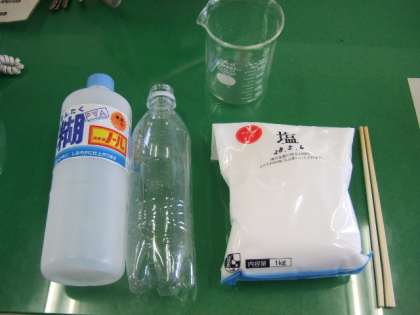 さて、今回使用する物は、塩(40g)、水100mL