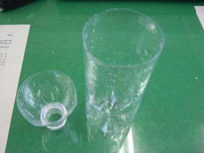 まず、ペットボトルの上の部分を切り取ります。