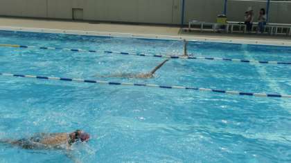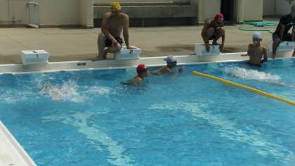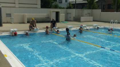 8月9日(火)に大阪プールで行われる「水泳記録会」に向けて、参加する子ども達が、練習しています。今日は、リレー、メドレーリレーの練習をしました。