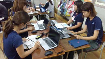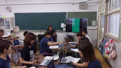 そのために今日は、タブレットの「デジタル教材」を活用するための研修会を開いて、先生たちが実際にタブレットの使い方を学びました。