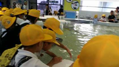 最後に、エイやさめを実際に手で触ってみました。つるつるとざらざらでしたね。