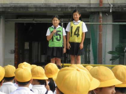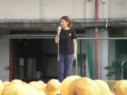 久しぶりに晴天の中、運動場で全校朝礼が行われました。