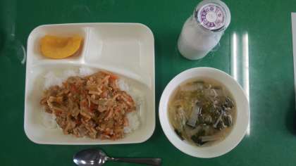 今日の給食に「黄桃(缶)」が登場します。黄桃はある果物