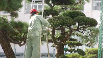 管理作業員さんが、樹木の剪定をしています。何日かかけて、松の木を中心に切ってくれています。きれいになった木を見てください!