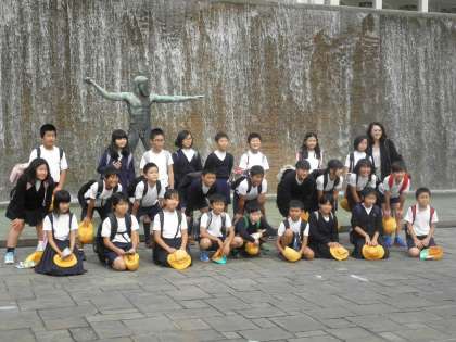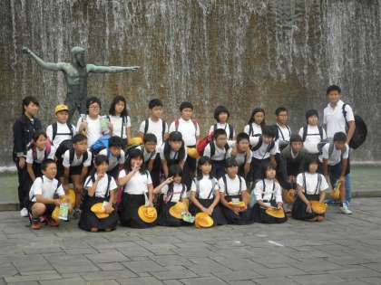 離宮公園の庭園で、学級写真を撮りました。