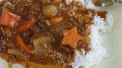 先日も「ラッキーにんじん」で、ホームページにアップしましたが、今日の「ハヤシライス」にも入っていました。