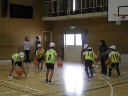 今回の授業は、前回6年B組で行ったバスケットボールの授業の検証授業でした。